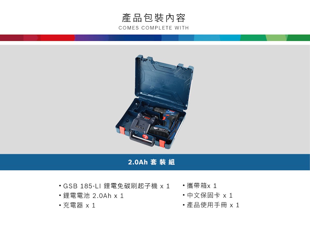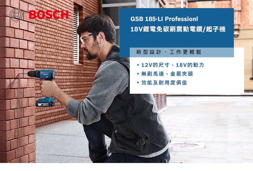 BOSCH GSB 185-LI 18V免碳刷震動電鑽/起子機 2.0Ahx1