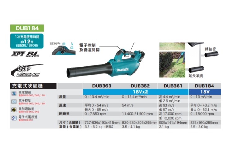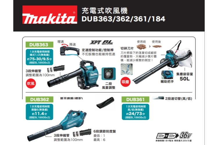 MAKITA牧田 DUB362Z 18V+18V無刷吹風機/吹葉機(單主機 無電池 無充電器)